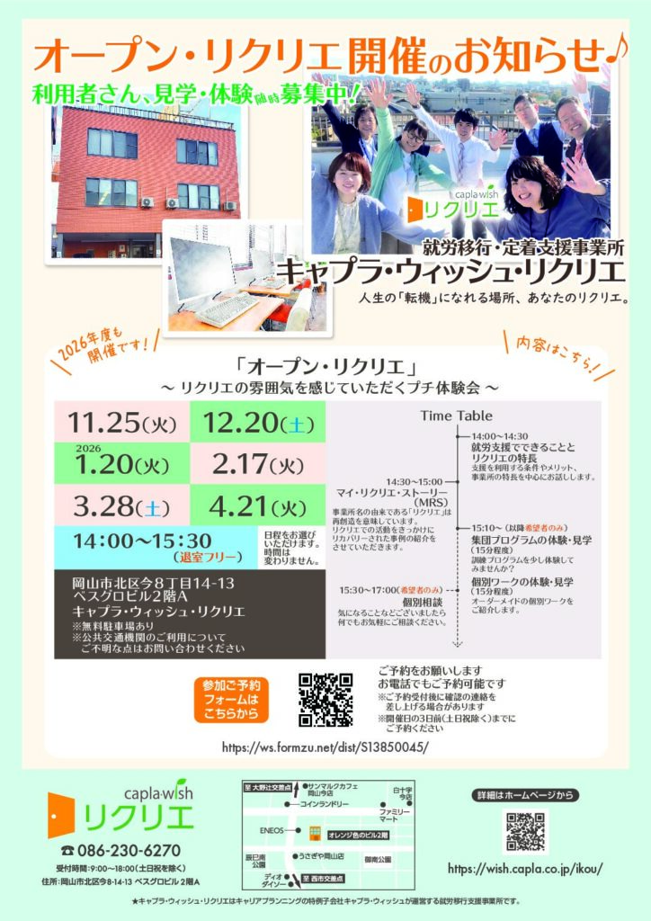 2025年度後半も、「オープン・リクリエ」を開催します!